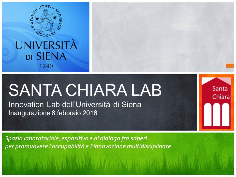 Sarà inaugurato lunedì 8 febbraio il Santa Chiara Lab, il nuovo laboratorio di innovazione e contaminazione dell’Università di Siena, a disposizione degli studenti e della città. Il nuovo spazio laboratoriale, espositivo e di dialogo fra saperi, realizzato dall’Ateneo ha l’obiettivo di promuovere l’occupabilità dei giovani e l’innovazione multidisciplinare.