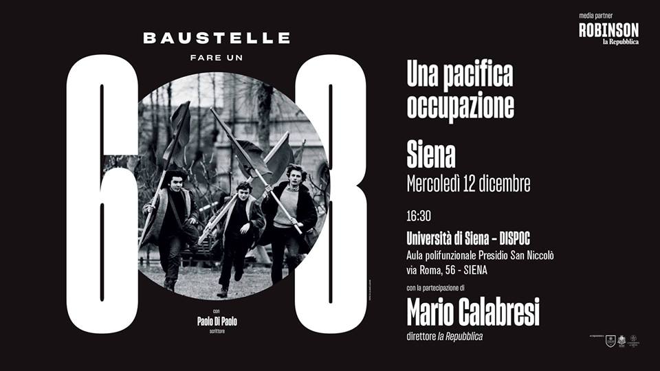 Un’ occupazione pacifica: è questo lo slogan del mini ciclo d’incontri che i Baustelle hanno tenuto in alcuni atenei del centro Italia. La band di Francesco Bianconi, Rachele Bastreghi e Claudio Brasini, accompagnata per l’occasione dal chitarrista Andrea Faccioli, ha scelto proprio l’Università di Siena come ultima tappa di questo evento, che vedeva tra i collaboratori Robinson, la Repubblica, il Santa Chiara Lab e il Dipartimento di Scienze Sociali e Cognitive.