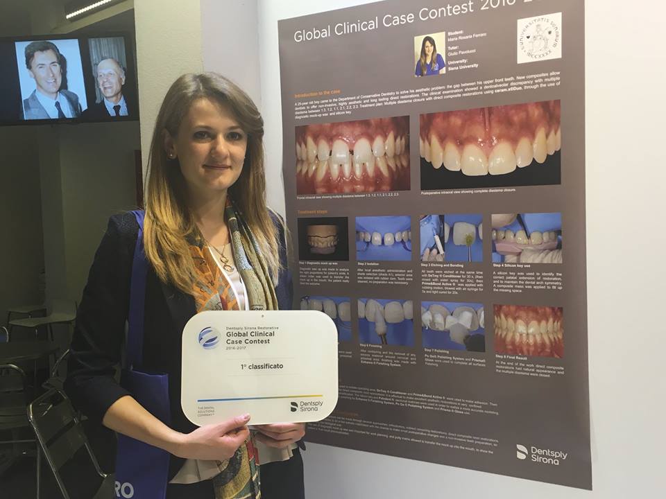 Stiamo parlando di Maria Rosaria Ferraro, studentessa di Odontoiatria qui a Siena che si è aggiudicata il primo posto, a livello nazionale, al Global Clinical Case Contest (secondo posto: Sofia Prà – Università degli Studi di Verona; terzo posto: Anna Zakaraya – Università degli studi di Milano).