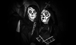 Inizialmente avevano una funzione esclusivamente estetica, e richiamavano il teatro kabuki giapponese. Le avevamo scelte perchè erano strane, inquietanti e belle a vedersi, ma poi invece abbiamo pensato di rifare un look alle maschere scegliendo il tema delle calaveras, i teschi fioriti messicani, molto più attinenti al tema di Parranda, simbolo di rinascita del gruppo e di un nuovo inizio in seguito allo scioglimento e alla ricomposizione.