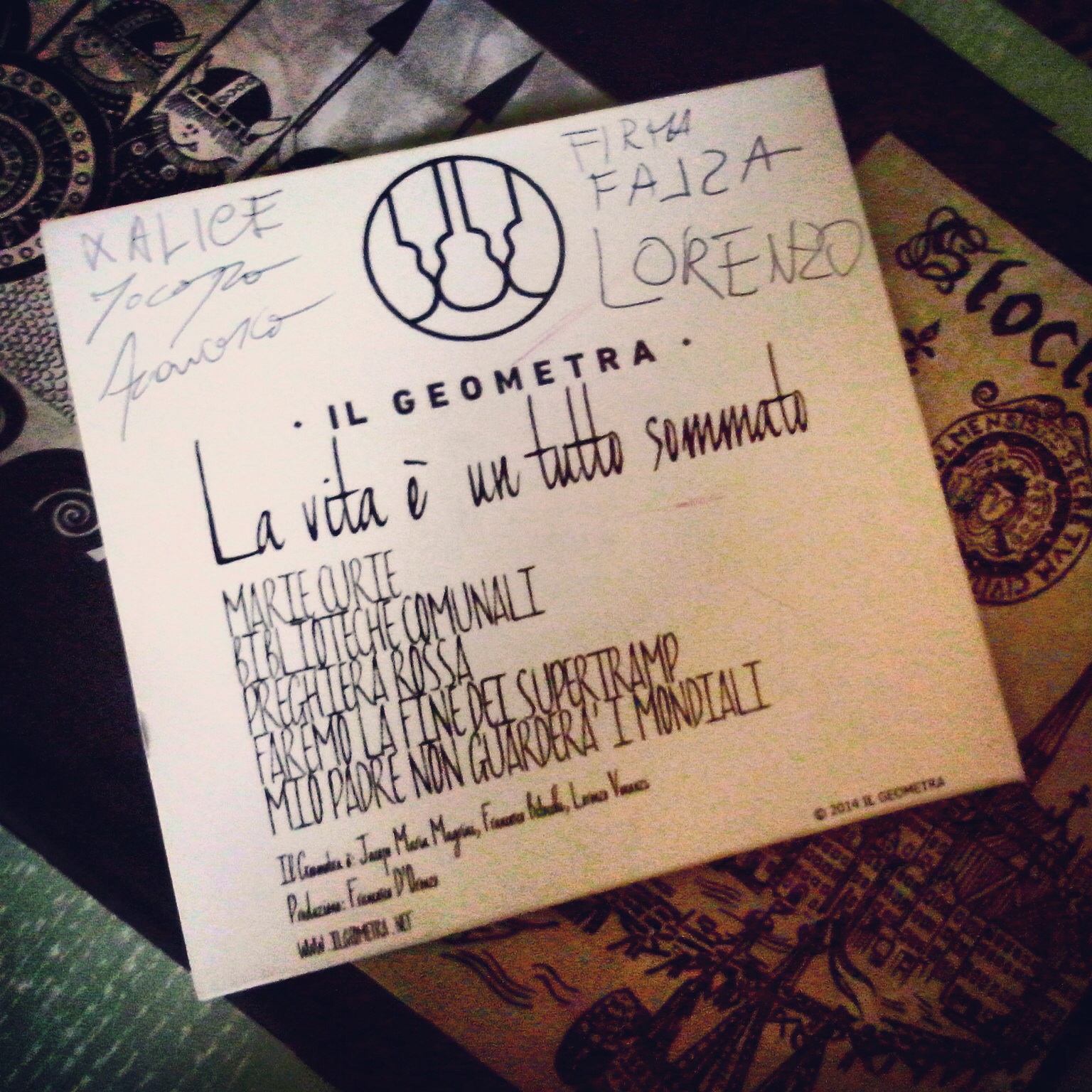 Capita che la tua ormai fida alleata in campo musicale Martina Lorenzoni de L’Intonarumori, un giorno, quasi per caso, ti consigli di ascoltare un progetto nuovo, e te lo consigli in modo forse più che spassionato: – Ali, guarda sono bravi per davvero, sono simpatici e, soprattutto regalano i loro cd durante i live! Neanche a farlo apposta scopri che di lì a poche settimane Il Geometra (Jacopo Magrini, Francesco Bitocchi e Lorenzo Venanzi), suoni proprio a pochi km da casa tua, e allora come lasciarsi sfuggire un’occasione del genere?