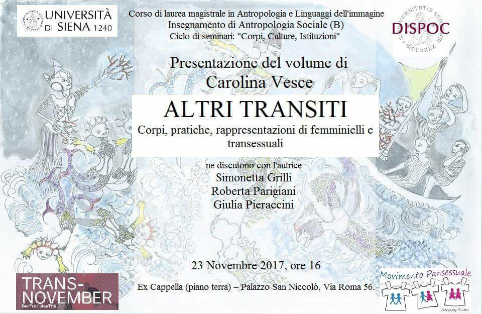 L’incontro, realizzato in collaborazione con il Movimento Pansessuale – Arcigay Siena e il DISPOC dell’Università degli Studi di Siena, include anche le letture di Francesco Chiantese e Albalisa Sampieri.