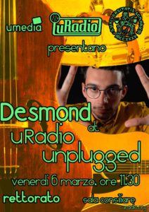 La carriera del giovane cantautore Desmond inizia nel 2010. Nel 2012 si aggiudica il Premio Speciale Miglior Strumentista della 3^ edizione del concorso Amici del Mauri per “originalità dei testi, interpretazione dei brani, presenza scenica ed efficacia nella comunicazione”. Nel 2013 vince il Trofeo Roxy Bar di Red Ronnie 2013, condividendo per l’occasione il palco con grandi artisti della musica italiana. Ha all’attivo un EP ed un Live e a Dicembre 2014 ha pubblicato il suo secondo EP Ulisse, anticipato dal singolo Spender poco: “una tragicomica descrizione dello stile di vita cheap&chic tornato da poco alla ribalta”.