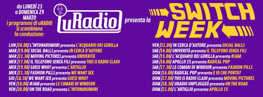Insomma, ce n’è per tutti i gusti. L’unica domanda è.. non siete ancora sintonizzati su uRadio? E cosa state aspettando? La SwitchWeek attende solo voi!