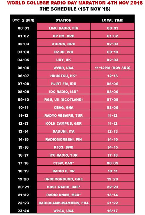Sei inciampato sulla nostra pagina Facebook e hai notato il continuo cambio di copertina. Sulle immagini una fascia rossa, sempre la stessa, con su scritto World College Radio Day a chiare lettere cubitali, accompagnata da un countdown. Che succede?